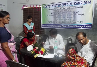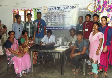 The NSS WINTER SPECIAL CAMP, 2014 was organized by NSS UNIT-I and UNIT-II of Krishnagar Govt. College at Shambhunagar village in the Ruipukur Gram Panchayat and Shimultala village in the Depara Gram Panchayat, respectively, located in Krishnagar-I. The units jointly executed the programme and activities run in parallel in both the villages performed by the volunteers of the two units.